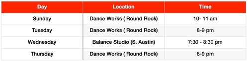 Choose a class that best fits your schedule and come dance with us!